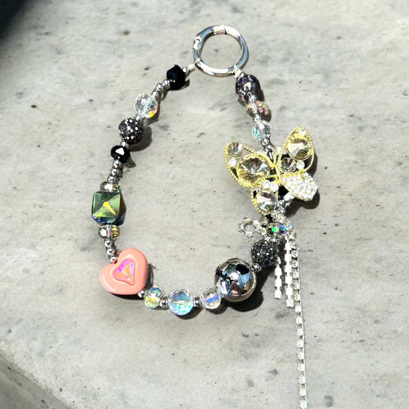 Add a touch of elegance to your phone with our Gem Butterfly Phone Charm. The delicate butterfly design is adorned with sparkling gems, making it a stylish accessory that will elevate your phone's appearance. Perfect for those looking to add a unique and luxurious touch to their device.