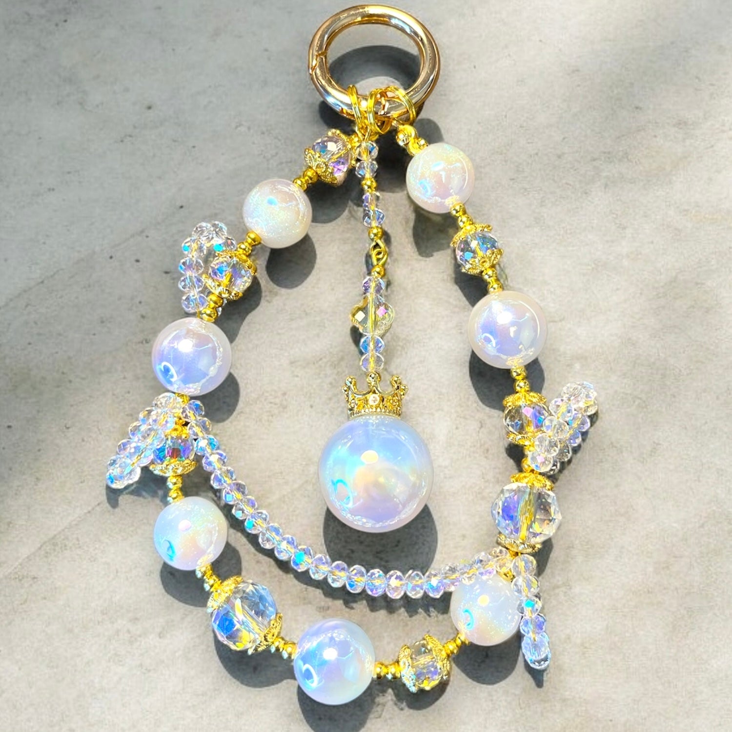 White Crystal and Gold Royal Phone Charm P227