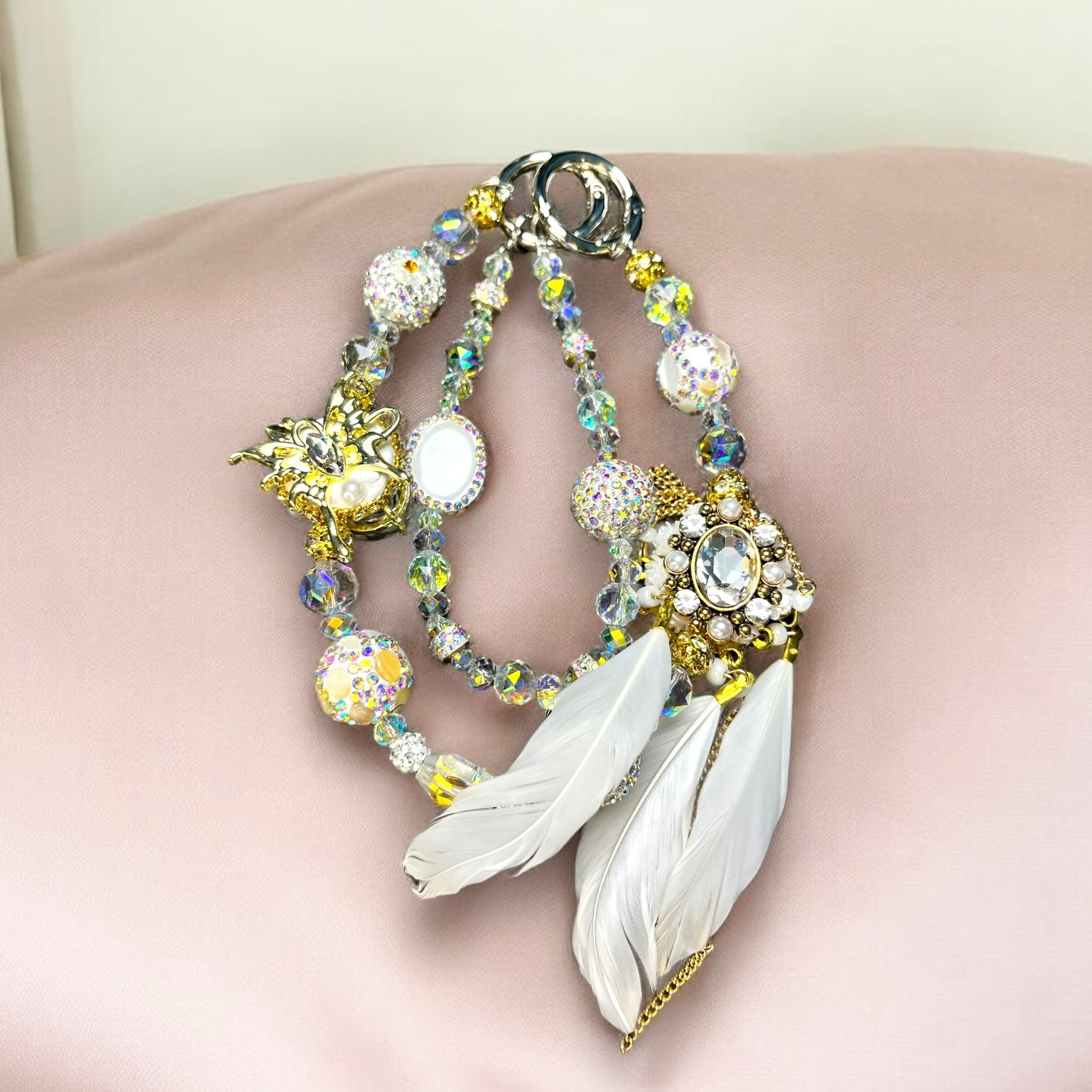 The White Feather Phone Charm adds a touch of elegance to your phone, with its delicate white feather design. Handcrafted with precision, this charm is the perfect addition to any phone, providing a unique and stylish accessory. Elevate your phone's look with this beautiful feather charm.